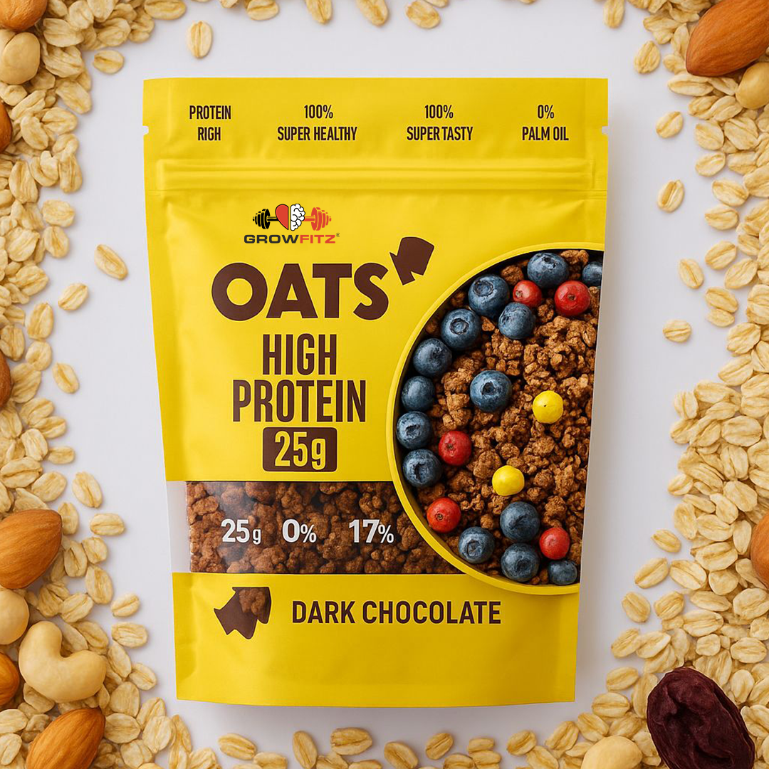 Rajeev31/07/2025Verified Awesome Nuts and oats is good in taste and fresh and value for money high quality good for weight loss and stamina. Nupur Singh29/07/2025Verified Best for breakfast I love this product. The taste is so good and it has good protein content too. The quality is good as it has high value seeds in it. Never ever buy these shoes. Broke completely in first use. This is a fraud product. Beware29/07/2025Verified Best way to start your day Perfect choice for a healthy breakfast. The taste is awesome and easy to digest. I would recommend every one to include it the breakfast for a healthy start of Day. Keeps you energetic all day. Subodh Gawde28/07/2025Verified Nutritious and Delicious Oats! I'm loving Growfit Oats! They're high in fiber and protein, gluten-free, and rich in antioxidants. The slow carb rolled oats breakfast is a great way to start my day Sagargupta991100018124/07/2025Verified Absolutely Delicious & Nutritious – A Perfect Start to the Day! ’ve tried countless healthy breakfast options, but GROWFITZ High Protein Oats has truly raised the bar. The dark chocolate flavor is rich and indulgent without being overly sweet — and best of all, there’s no refined sugar! It’s rare to find something that tastes this good and still supports my fitness goals.What I love most is the 25g of protein and 17g of fibre per serving — it keeps me full for hours and powers me through the morning. The mix of almonds, raisins, pumpkin seeds, and chia seeds adds a delightful crunch and natural sweetness. Plus, it’s gluten-free, which is a big win for anyone with dietary sensitivities.The XXXL 800g pack is generous and lasts long, making it great value for money. Whether you’re into clean eating, working out, or just want a genuinely healthy breakfast cereal, this one’s a keeper. Highly recommended! Firoz10/07/2025Verified Excellent quality, delicious and value for money The quality of these oats is excellent, and the taste is quite enjoyable. The addition of chocolate significantly enhances the flavor, making it a delicious and satisfying option. They provide a good boost of energy and are definitely value for money. Preparation is quick and easy, making them a convenient choice for busy mornings